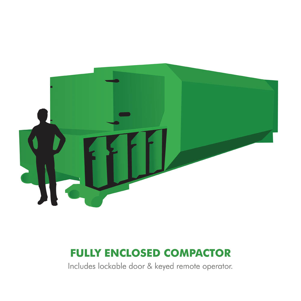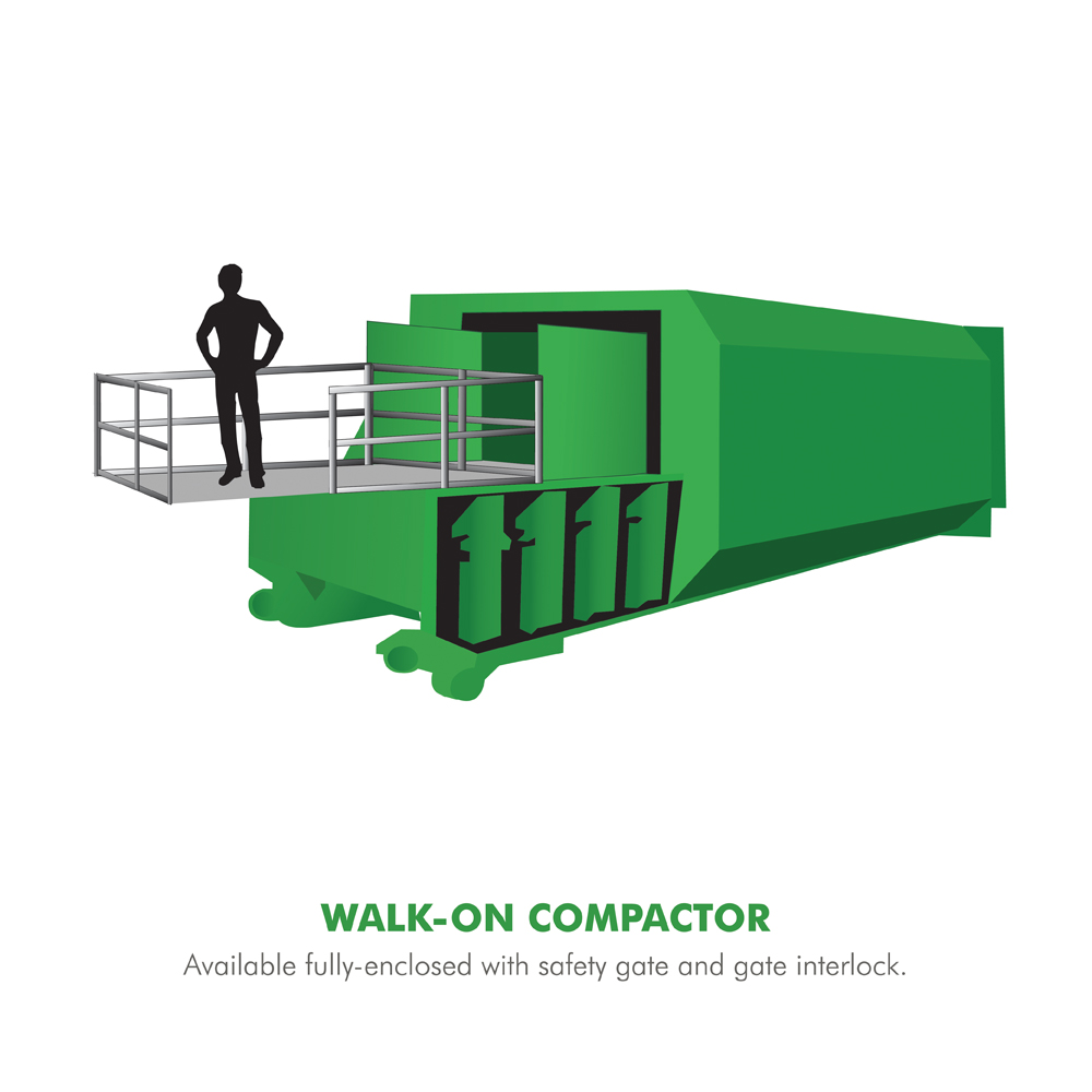Compaction is the most efficient and cost effective manner to handle unmanageable volumes of waste materials. Compactors reduce waste to a fraction of its original size. Refuse is deposited into the compactor charging chamber where a hydraulically operated compacting ram crushes the material into a closed receiving container.